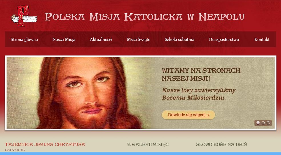 Placówka Towarzystwa Chrystusowego dla Polonii Zagranicznej - Polska Misja Katolicka w Neapolu uruchomiła właśnie nową stronę internetową. Oprócz podstawowych informacji, jak te o historii Misji oraz lokalizacji świątyń, w których są sprawowane Msze Święte w języku polskim, dostępnych jest na niej wiele nowości, między innymi aktualne wydarzenia i ich zapowiedzi, ogłoszenia duszpasterskie oraz informacje o zgromadzonych wokół Misji duszpasterstwach, w tym o prowadzonej przez proboszcza, ks. Włodzimierza Dziducha SChr szkole sobotniej. Zapraszamy do wirtualnych odwiedzin polskiej wspólnoty w Neapolu pod adresem: www.pmk-napoli.com