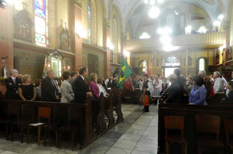 Uroczysta Eucharystia sprawowana była przez rektora PMK w Brazylii ks. Zdzisława Malczewskiego TChr w polskim kościele pw. św. Stanisława Biskupa i Męczennika w Kurytybie (Rua Emiliano Perneta 463). Koncelebrowali: ks. Wawrzyniec Biernaski, wincentyn oraz miejscowy proboszcz werbista ks. Mário José Steffen. Główny ołtarz pięknie przystrojono biało-czerwonymi kwiatami.