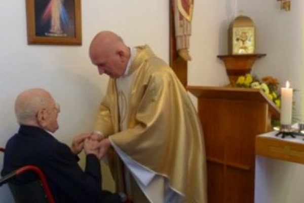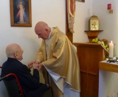 Uroczystość rozpoczęła się Mszą Świętą dziękczynną w intencji naszego Stulatka, celebrowaną przez założyciela ośrodka Jasna Góra, a obecnie kapelana domu ks. Jana Wojczyńskiego, chrystusowca. Celebrans przypomniał wydarzenie z obozu koncentracyjnego Buchenwald, kiedy Romuald Rodziewicz stanął w obronie swojego medalika otrzymanego na początku wojny od swojej siostry Zofii. Powiedział, że Jubilat był nie tylko bohaterem na polu walki w obronie Ojczyzny, ale również bohaterem wiary. Z naszym dziękczynieniem Panu Bogu za długie i bohaterskie życie Pana Romana łączyliśmy nasze życzenia wszystkiego najlepszego śpiewane zaraz po Mszy Świętej w naszej kaplicy.