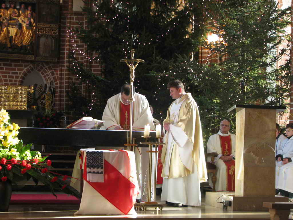 Mszy Świętej przewodniczył ks. Stanisław Rakiej proboszcz z parafii chrystusowców w Oshawie (Kanada), który też wygłosił homilię. Wraz z nim koncelebrowali: miejscowy proboszcz ks. Zbigniew Rakiej TChr, duszpasterz Polaków w Kijowie ks. Leszek Tokarzewski TChr, ks. Klemens Dąbrowski TChr proboszcz w Pompano Beach na Florydzie oraz nasz historyk ks. prof. UAM Bernard Kołodziej TChr, który przed pobłogosławieniem przywiezionych znaków pamięci, w specjalnej prezentacji, przedstawił wiernym tamte tragiczne wydarzenia. Kilka zdjęć tutaj.
