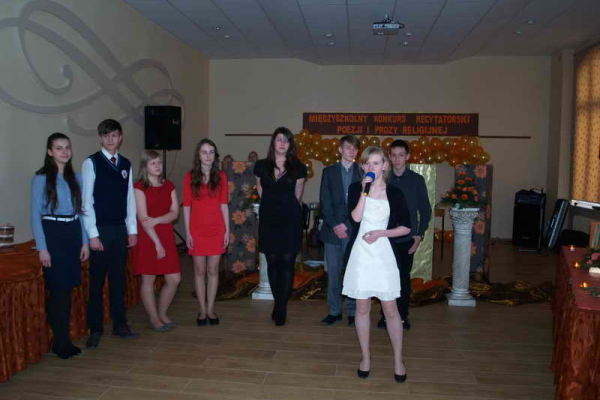 W czwartek, 21 lutego 2013 r. w Zespole Szkół Nr 6 w Szczecinie odbył się V Międzyszkolny Konkurs Recytatorski Poezji i Prozy Religijnej pod honorowym patronatem ks. abpa Andrzeja Dzięgi, metropolity szczecińsko-kamieńskiego. W tym roku także, po raz kolejny, swoim patronatem objęły nas dwa wydawnictwa związane z Towarzystwem Chrystusowym dla Polonii Zagranicznej: Hlondianum i Agape. Konkurs z roku na rok cieszy się większą popularnością. W tym roku wzięło w nim udział ponad pięćdziesięciu uczestników z dwudziestu siedmiu szkół województwa zachodniopomorskiego, m.in. ze Złocieńca, Nowogardu, Stargardu Szczecińskiego, Choszczna, Goleniowa, Kołobrzegu.