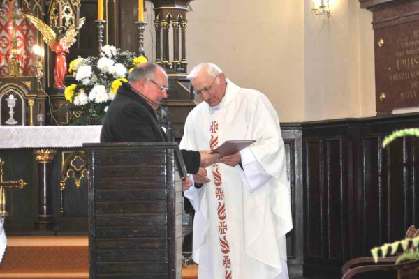 Na uroczystości obecny był również przedstawiciel miejscowej władzy państwowej, który na końcu Mszy Świętej, wraz z serdecznymi życzeniami wręczył Jubilatowi okolicznościowy dyplom uznania za „wielki wkład w duchowy rozwój mieszkańców rejonu”. Oczywiście nie zabrakło przedstawicieli różnych grup parafialnych, którzy w swoich życzeniach – często ze łzami w oczach – pokazali, jak cenna jest dla nich osoba ich pasterza. Kilka zdjęć autorstwa p. Ludmiły Piaseckiej tutaj.
