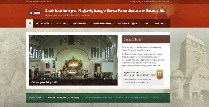 Sanktuarium Najświętszego Serca Pana Jezusa w Szczecinie uruchomiło na początku lipca nową stronę internetową www.nspj.szczecin.pl