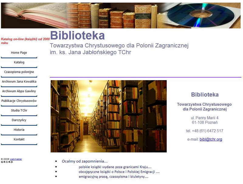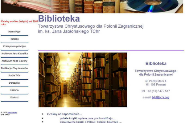 Biblioteka Towarzystwa Chrystusowego im. ks. Jana Jabłońskiego TChr działając w ramach swojego zawołania: