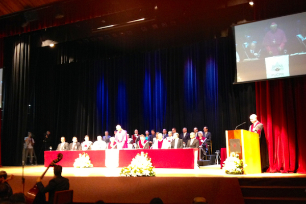 Uroczystość objęcia urzędu rektora miała miejsce w teatrze tej uczelni i została oficjalnie otwarta przez wielkiego kanclerza arcybiskupa metropolitę Moacyra Vitti. Wszystkie miejsca w teatrze zajęte do ostatniego. Nawet była spora grupa osób stojących ze względu na brak wolnych foteli. Uroczystość zainaugurowano odśpiewaniem trzech hymnów: Brazylii, Watykanu i Uniwersytetu. Wśród zaproszonych uczestników tej uroczystości był obecny rektor PMK - ks. Zdzisław Malczewski SChr, a także Konsul Generalny RP w Kurytybie p. Marek Makowski. Wspomniani dwaj Polacy zostali wymienieni przez ceremoniarza uroczystości, jako obecni wśród zaproszonych uczestników tego ważnego wydarzenia.