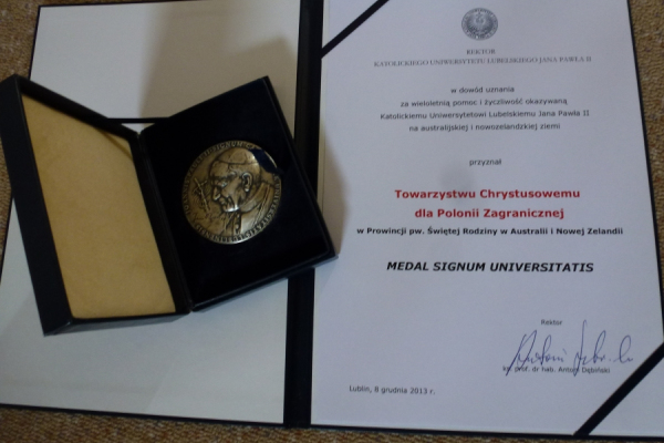 Pobyt Rektora KUL-u w Australii był także okazją do wyrażenia szczególnej wdzięczności polskim duszpasterzom. Podczas Mszy św. w Keysborough, sprawowanej w Boże Narodzenie, przekazał on na ręce ks. Prowincjała medal „Signum Universitatis”. Medal ten został przyznany księżom chrystusowcom pracującym na terenie Australii i Nowej Zelandii, jako wyraz uznania za wsparcie Katolickiego Uniwersytetu Lubelskiego Jana Pawła II.