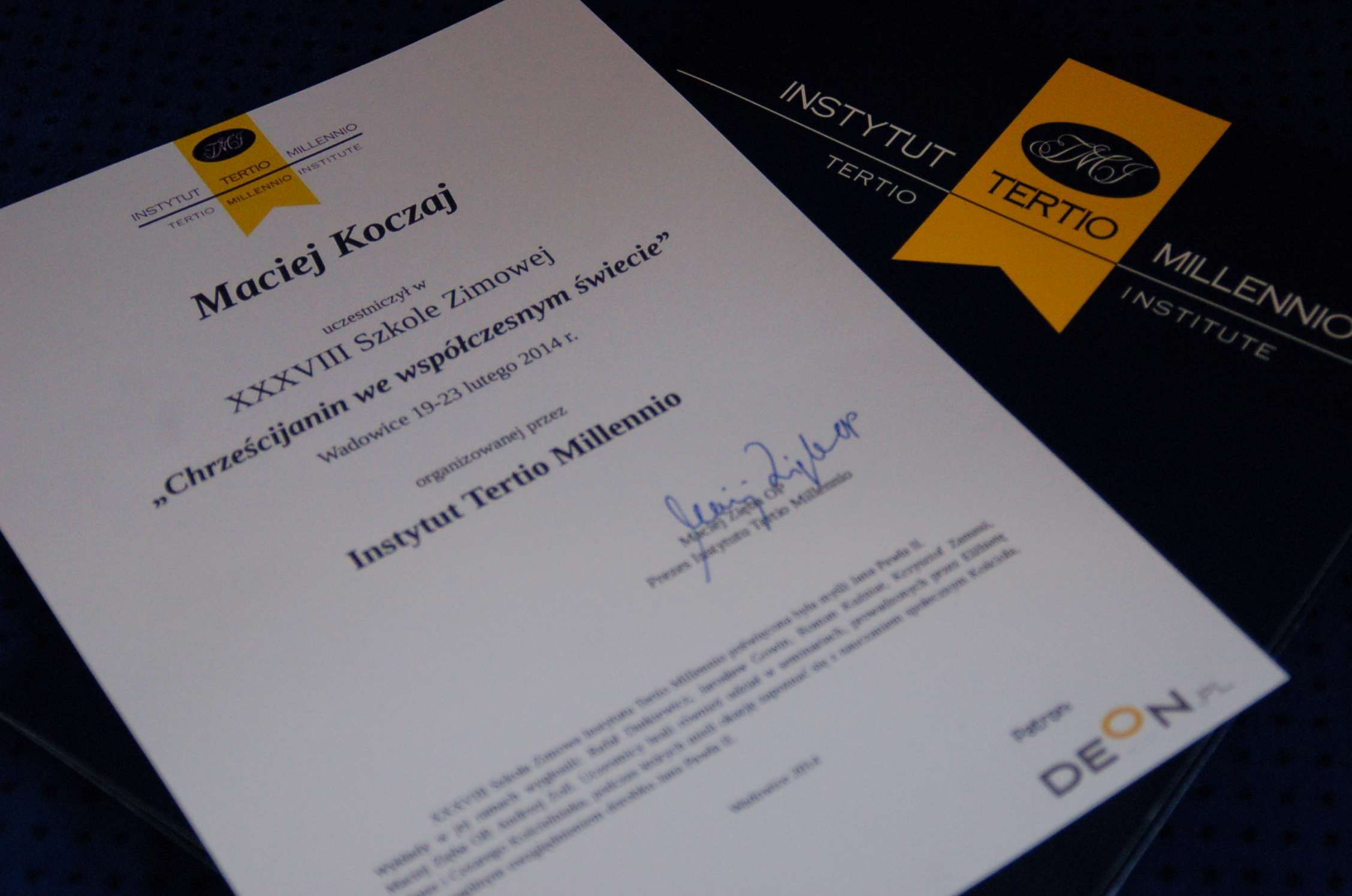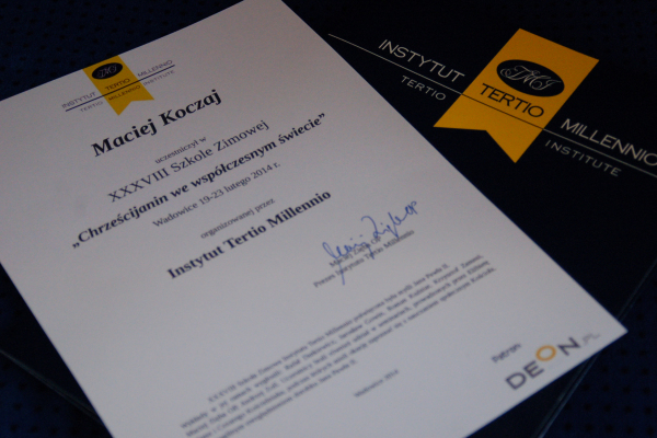 Kleryk Maciej Koczaj TChr wziął udział w "Szkole Zimowej" organizowanej przez Instytut Tertio Millenio. "Szkoła Zimowa" to wyjazdowe seminarium poświęcone myśli Jana Pawła II oraz nauczaniu społecznemu Kościoła. Odbyło się ono w dniach od 19 do 23 lutego w Wadowicach. Podczas spotkania uczestnicy mieli możliwość wysłuchania wykładów oraz dyskusji m.in. z o. Maciejem Ziębą OP (organizatorem Szkoły), Jarosławem Gowinem, Andrzejem Zollem oraz Krzysztofem Zanussim. Brali również udział w warsztatach dotyczących problemów, wyzwań i szans stojących przed współczesnym Kościołem. "Szkoła Zimowa" stwarza możliwość spotkania i wymiany myśli wybranym, zdolnym studentom i absolwentom, którym bliskie jest spojrzenie na sprawy społeczne przez pryzmat wiary i w odniesieniu do nauczania Kościoła. Stara się również gromadzić prominentnych prelegentów, którym nieobca jest problematyka obecności wiary w przestrzeni publicznej.