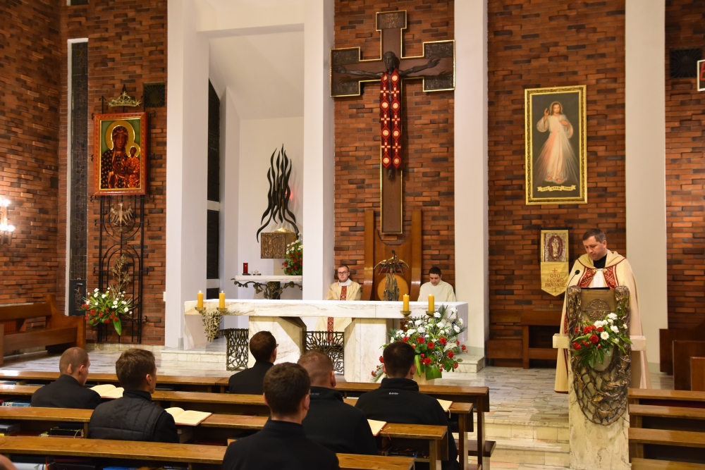 Sobotni dzień skupienia bezpośrednio przygotował nas na naszą tytularną uroczystość, zarówno poprzez spowiedź świętą, jak i słowo Boże, które wybrzmiało, jako impuls do obdarowywania, bo tylko dar wyraża miłość, a Miłość obdarza życiem. Stąd Bóg jest Bogiem żywych, jest Bogiem i Królem każdego, kto dla Niego żyje, kto żyje Jego życiem.