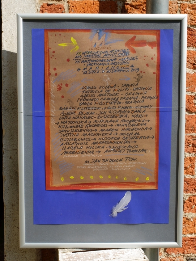 Tegoroczne jubileuszowe - już Dwudzieste Międzynarodowe Spotkania Artystów w Marianowie odbyły się na przełomie lipca i sierpnia. Były wyjątkowe - najliczniej obsadzone. W zamyśle miały być jakby podsumowaniem wszystkich dotychczasowych. Dwudzieste spotkania – dwudziestu artystów - prawie wszyscy już byli tu wcześniej, przynajmniej raz. Przyjechali po raz kolejny bez wahania uznając możliwość uczestnictwa w jubileuszu za wyróżnienie. Przybyło zatem do Marianowa czworo Brazylijczyków: Carlos Matuck z Sao Paulo (architekt, rysownik, ilustrator, twórca współczesnych murali); Patricia de Filippi również z Sao Paulo (architekt i fotografik – zawodowo zajmuje się renowacją i digitalizacją filmów w laboratorium Filmoteki Brazylijskiej); Fernando Camara Franca mieszkający w Fortaleza (malarz, rysownik, ilustrator i literaturoznawca, autor licznych murali i autorsko ilustrowanych wydawnictw); Vando Figueiredo – również z Fortalezy (wszechstronny - artysta, malarz, rzeźbiarz, rysownik, grafik, projektant, profesor malarstwa. Z Nagoi w Japonii przyjechała Kiyoko Kozawa malarka i autorka instalacji i przedmiotów artystycznych, jej realizacje i wystawy można oglądać w Brazylii, Japonii i w Europie.