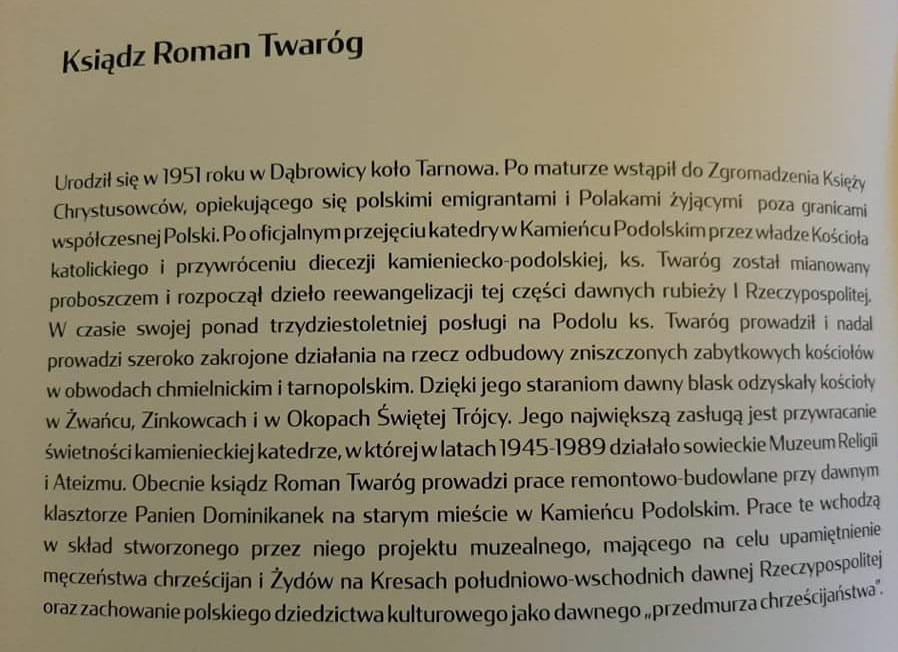 Pośród uhonorowanych był nasz Współbrat, ks. Roman Twaróg SChr, od ponad 30 lat posługujący w Kamieńcu Podolskim na Ukrainie. Gala połączona z wręczeniem statuetki odbyła się jedenaście miesięcy później – w piątek 8 października 2021 r. O tej gali i wręczeniu nagrody dowiadujemy się dzięki ks. Leszkowi Kryży SChr, zaangażowanemu w sprawy różnorakiej pomocy duszpasterzom na Kresach i w krajach dawnego Związku Sowieckiemu, który też przesyła fotografie…