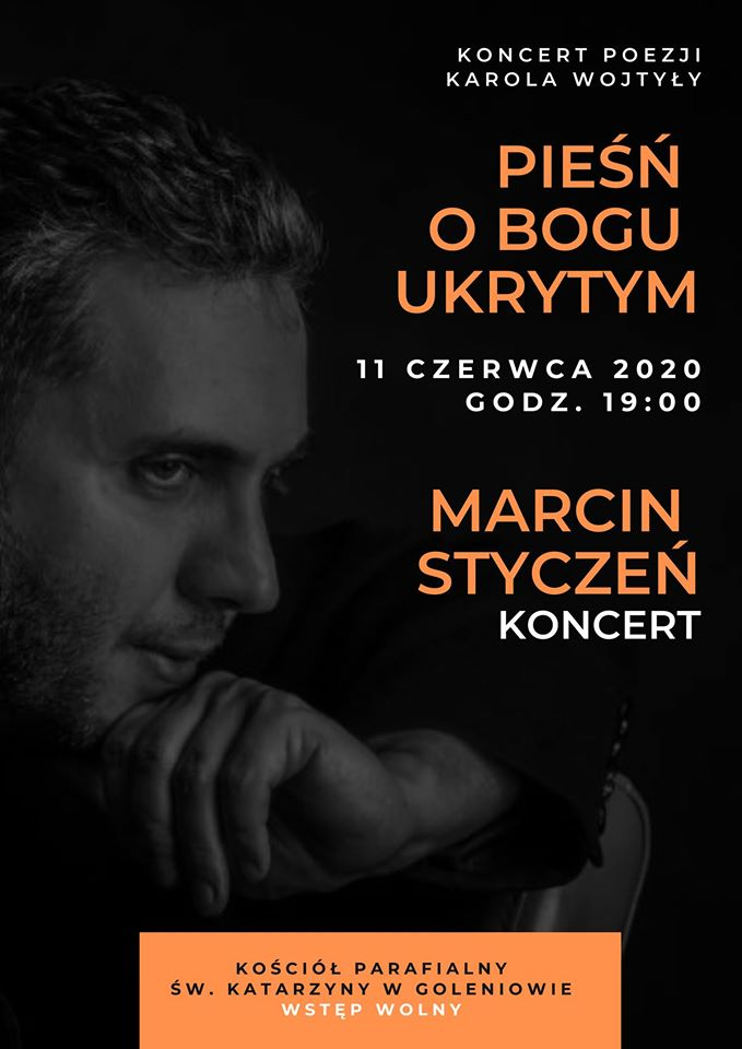W kościele pw. św. Katarzyny w Goleniowie Marcin Styczeń wraz z zespołem przedstawi utwory ze swojej płyty: „Pieśń o Bogu ukrytym”, na którą składają się wczesne wiersze Karola Wojtyły. Jak przyznaje sam piosenkarz, chciał pokazać głębię i prostotę poezji tak wybitnej postaci. Dlatego wierszom tym nadał prostą formę melodyjnych piosenek.