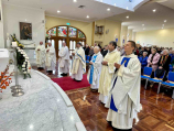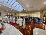 Koncelebrowana Msza Święta przez siedmiu duszpasterzy: o. Wiesława Słowika SJ, o. Tadeusza Rostworowskiego SJ, o. Mariusza Hana SJ, o. Stanisława Ligenzę OP, ks. Mariana Szeptaka SChr, ks. Kamila Żyłczyńskiego SChr i pod przewodnictwem ks. Andrzeja Mądrego CR, proboszcza dwóch parafii – Dobrego Pasterza w Mulgrave i Świętego Justyna w Wheelers Hill była kulminacją wspólnej modlitwy. Ks Andrzej również wygłosił homilię, którą oparł na pierwszym cudzie dokonanym przez Pana Jezusa w Kanie Galilejskiej – przemianie wody w wino. Mówił, że ten niby trywialny cud, który często jest podstawą salonowych żartów, stał się tak wymownym w swej treści. Na prośbę Matki „Nie mają wina” (J 2,3b), wydawałoby się, jak to dzisiaj byśmy powiedzieli, Jezus zachował się obcesowo, jednak uczynił cud dla umocnienia wiary uczniów w jego moc. To wydarzenie w Kanie, kontynuował homilista, pokazuje jak wrażliwy jest Jezus i Maryja na nasze prozaiczne często potrzeby. Maryja pokazuje nam jak zaufać Jezusowi i wypełniać jego polecenia nawet jak tego do końca nie rozumiemy, ponieważ interwencja Boga w naszym życiu jest zawsze dobra. Aby móc i potrafić wykonywać polecenie Maryi „Zróbcie wszystko cokolwiek wam powie” (J 2,5) trzeba rozważać słowa Pisma z pokorą, modlić się o pomnożenie wiary, a Jezus nas uszlachetni i udoskonali.