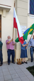 Bezpośrednio po liturgii udaliśmy się na drugą stronę alei, gdzie w budynku biurowym mieści się Konsulat Honorowy RP. Przed budynkiem Konsulatu Sergio Sechinski – pełniący misję Konsula Honorowego Rzeczypospolitej Polskiej w stanie Rio Grande do Sul skierował do zebranych słowa płynące z polonijnego serca, w których zachęcał, abyśmy pielęgnowali dumę z naszego pochodzenia i zachowywali wartości, jakie przywieźli ze sobą z dalekiej Polski nasi przodkowie. Kolejne generacje emigracyjne w drugim, trzeci, czy piątym pokoleniu żyjące w stolicy i na terenie tego bogatego stanu i trochę mniejszego terytorialnie od Polski, potrafiły pielęgnować i przekazywać nowym spadkobiercom bogactwo naszych tradycji i przejawów kulturowych. Po przemówieniu, Konsul poprosił duszpasterza, aby umieścił polską flagę na specjalnym miejscu przy wejściu do budynku. Z kolei odśpiewaliśmy nasz hymn narodowy! Ukoronowaniem modlitewno-patriotycznej celebracji było spotkanie w siedzibie Konsulatu, gdzie konsul Sergio podjął nas tradycyjną małą, czarną i aromatyczną brazylijską kawą i biszkoptami. Przy kawie mieliśmy okazję do wspólnej przyjacielskiej rozmowy, jak też przedstawić sugestie do uroczystego świętowania Niepodległości Polski z udziałem Ambasadora Najjaśniejszej dra Jakuba Skiby, który będzie składał wizytę oficjalną w stanie Rio Grande do Sul w dniach od 18 do 21 listopada.