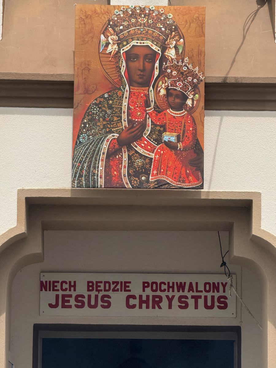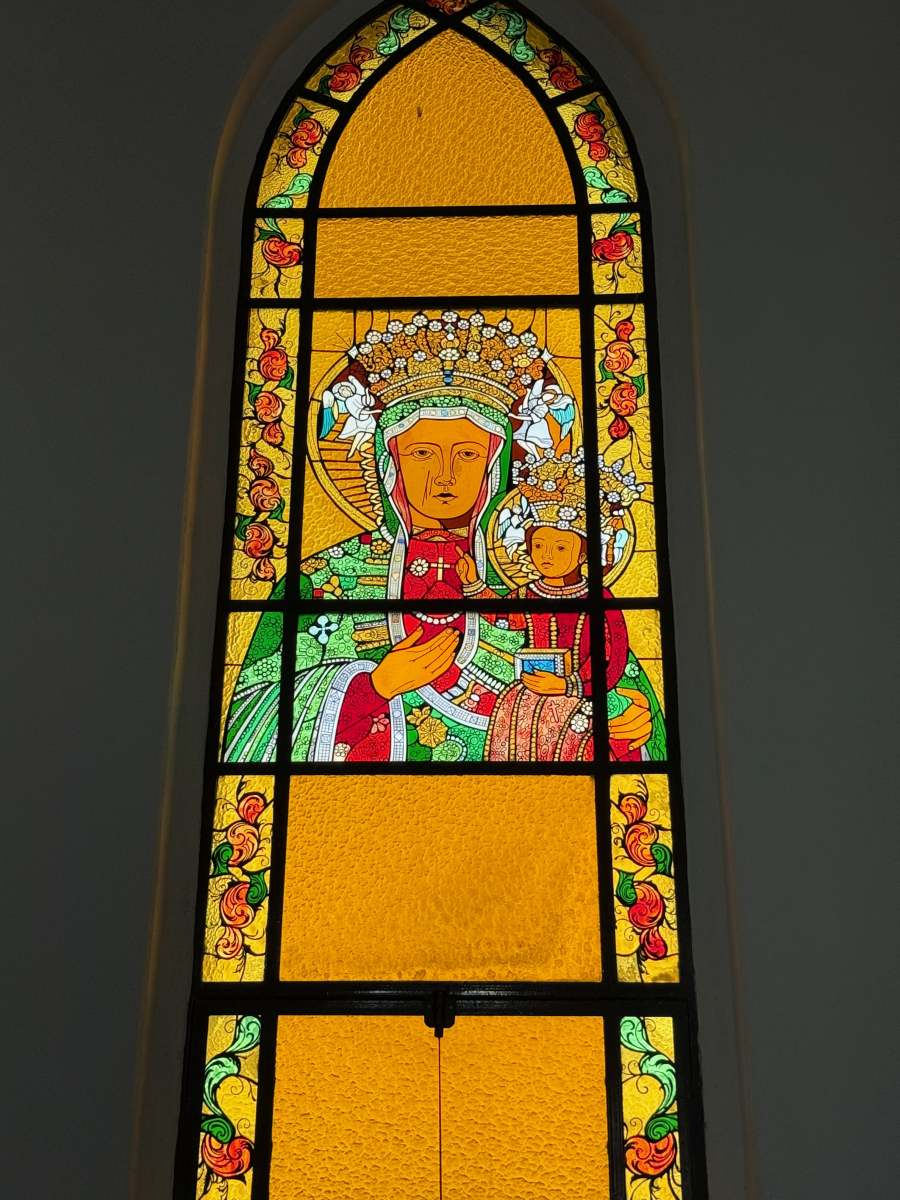 W dużej sali, na frontowej białej ścianie wykonano kolorowymi czerwonymi literami napis: «Witamy serdecznie na XXV POLSKI FESTYN, gdzie wiara i tradycja łączą pokolenia», zaś poniżej zamieszczono również powitanie tej samej treści w języku portugalskim. Warto też odnotować, że przy wejściu do kościoła nad drzwiami widnieje polski napis «Niech będzie pochwalony Jezus Chrystus», a jeden z witraży w prezbiterium ukazuje obraz Pani Jasnogórskiej, a poniżej niego umieszczony jest obraz św. Jana Pawła II.