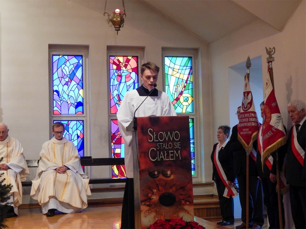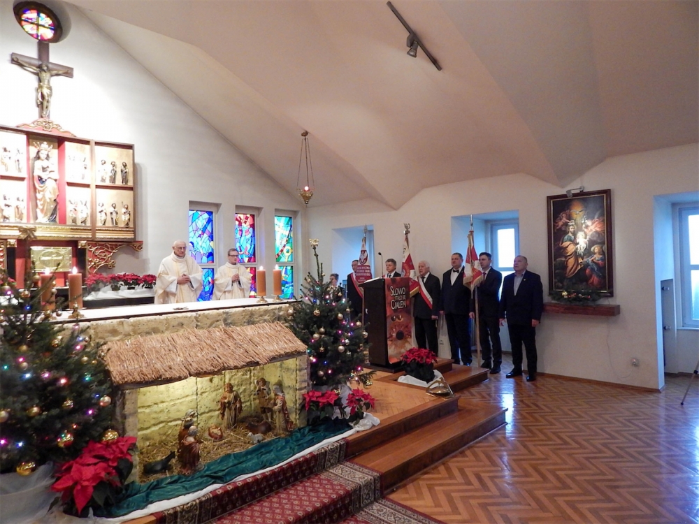 „Opłatek AK-owców” rozpoczął się uroczystą Mszą Świętą w kaplicy, której przewodniczył magister nowicjatu ks. Karol Kozłowski SChr. W czasie Eucharystii uczestnicy modlili się w intencji Ojczyzny, prosząc o trwały pokój oraz błogosławieństwo Pana Boga dla wszystkich Polaków.