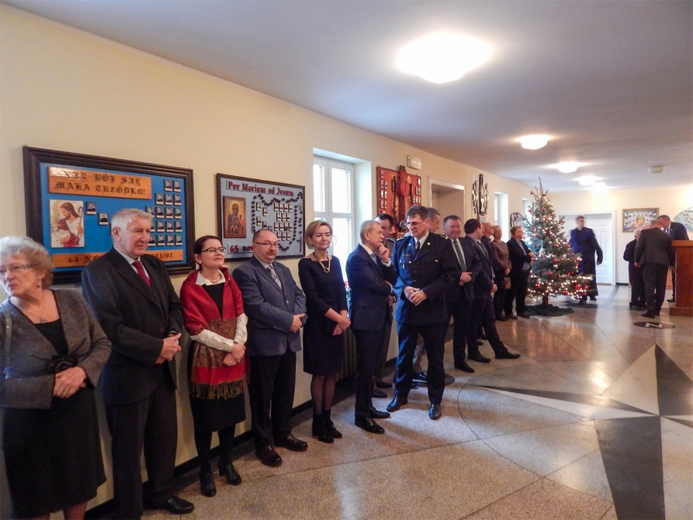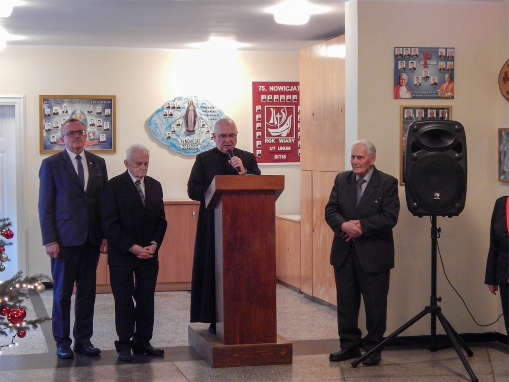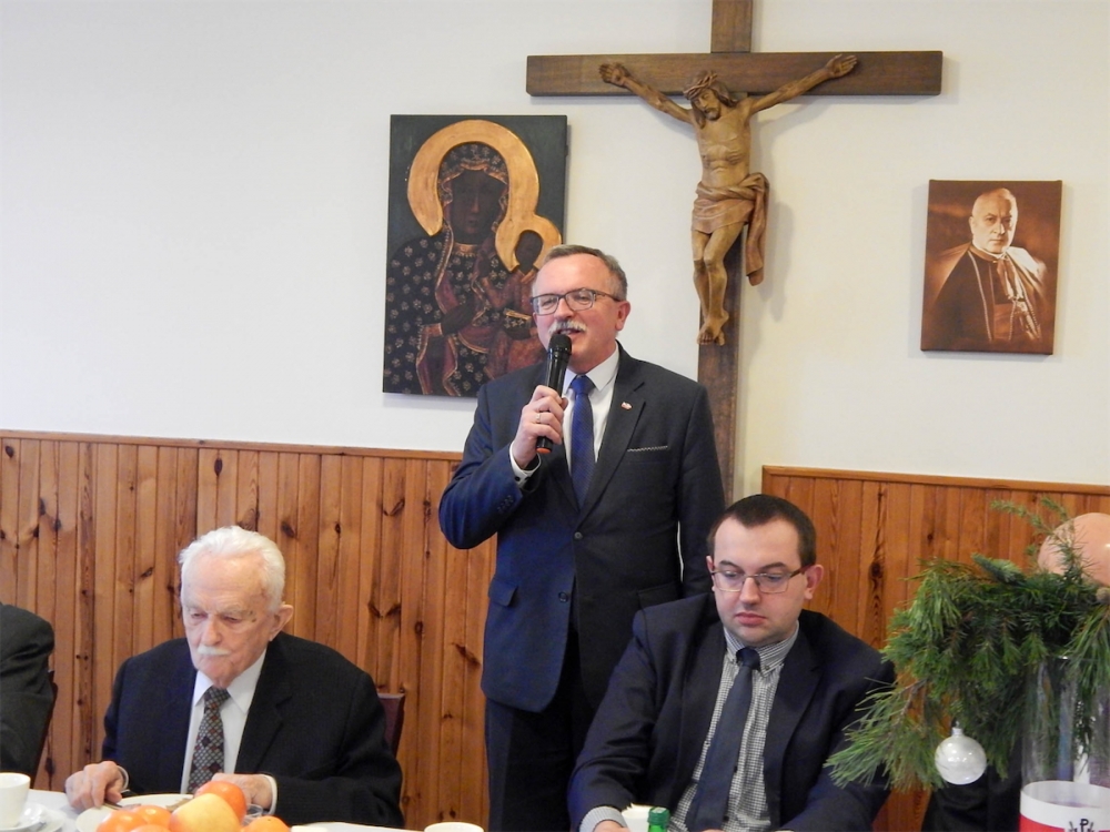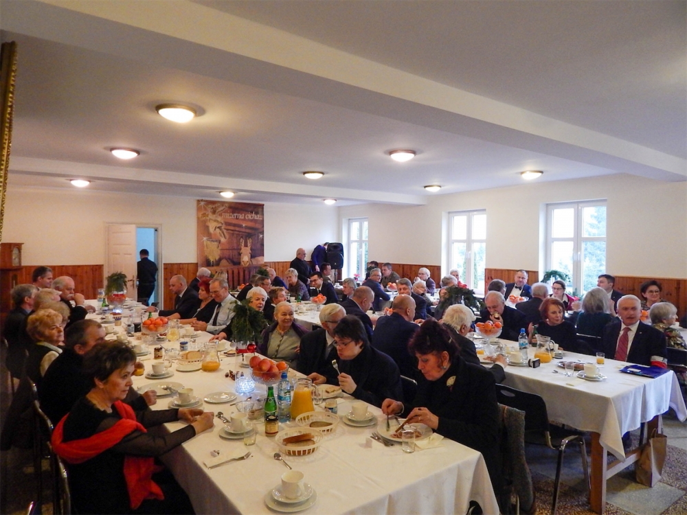 Po Mszy Świętej wszyscy uczestnicy uroczystości udali się na hol zakonnego refektarza. Przybyłych gości powitał Kierownik Delegatury Wielkopolskiego Urzędu Wojewódzkiego w Lesznie Zenon Jóźwiak. Głos zabrał także Prezes Światowego Związku Żołnierzy Armii Krajowej Okręg Wielkopolska pułkownik Jan Górski. Warto wspomnieć, że wśród przybyłych na uroczystość był również Prezes Oddziału Leszno Światowego Związku Żołnierzy Armii Krajowej - Joanna Kiąca-Fryczkowska ps. „Joasia”– łączniczka w powstaniu warszawskim 1944 roku. Ksiądz Magister po odczytaniu fragmentu Ewangelii o narodzeniu Pana Jezusa poprowadził spotkanie opłatkowe. Po złożeniu sobie serdecznych życzeń wszyscy udali się do refektarza na tradycyjną żołnierską grochówkę.