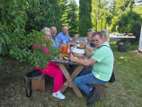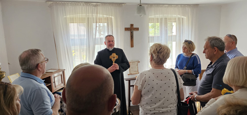 Stamtąd grupa podążyła w kierunku sanktuarium Matki Bożej Pocieszenia w Górce Duchownej, gdzie przyjął ją kustosz sanktuarium i proboszcz parafii ks. Przemysław Wilk. Oprowadził po sali pamięci bł. Edmunda Bojanowskiego i przybliżył jego postać. Pielgrzymi odmówili Koronkę do Bożego Miłosierdzia oraz mogli uczcić relikwie bł. Edmunda. Ostatnim punktem tego dnia był przejazd do domu nowicjackiego w Mórkowie, gdzie modlą się, pracują i poznają życie zakonne i zgromadzenie najmłodsi chrystusowcy – nowicjusze. Dla rodziców był to swoisty powrót do przeszłości, kiedy to odwiedzali oni swoich synów w pierwszych miesiącach formacji czy uczestniczyli w uroczystości ich pierwszych ślubów zakonnych. Mieszkańcy domu nowicjackiego, nowicjusze i ich moderatorzy, przyjęli przybyłych iście po staropolsku, bo bardzo życzliwie, zapraszając do wspólnego grillowania. Nie obyło się oczywiście bez gawęd i opowieści o powołaniu najmłodszych Współbraci. Nabożeństwo czerwcowe zakończyło pobyt naszych rodziców w Mórkowie. W drodze powrotnej do Poznania został odmówiony różaniec, który poprowadził ks. Marian, wypowiadając intencje wspólnej modlitwy: za nowicjuszy i kleryków oraz o powołania, za braci i kapłanów chrystusowców posługujących na duszpasterskim froncie, za zmarłych Współbraci, za żyjących i zmarłych rodziców oraz przyjaciół i dobrodziejów Towarzystwa, o beatyfikację Sług Bożych kard A. Hlonda, ojca I. Posadzego i ks. Pawła Kontnego oraz w intencji Kapitały Generalnej i delegatów o owocne obrady i otwarcie na działania Ducha Świętego. Po dniu pełnym pięknych wrażeń wszyscy z radością udali się na spoczynek.