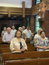 Sobotę uczestnicy rozpoczęli ‘po Bożemu’: od wspólnych pacierzy, którą było odmówienie jutrzni – porannej modlitwy Kościoła. Po przepysznym śniadaniu nasi rodzice wraz z towarzyszącymi im Współbraćmi wsiedli do podstawionego autokaru, by udać się z pielgrzymką po sanktuariach i innych urokliwych miejscach Wielkopolski. Pierwszym przystankiem był Luboń i niedawno erygowane Sanktuarium Błogosławionego Stanisława Streicha, zamordowanego z nienawiści do wiary przez fanatycznego zwolennika komunizmu (którego beatyfikacja odbyła się przed miesiącem w Poznaniu). Sylwetkę i dzieło życia tego męczennika przedstawił ks. dr Tomasz Rogoziński, wikariusz parafii pw. św. Jana Bosko w Luboniu. Wspólna Eucharystia pod przewodnictwem i z homilią ks. superiora Szymanika była kulminacją tej części pielgrzymki, jak i całego dnia. Na zakończenie liturgii uczestniczący otrzymali błogosławieństwo relikwiami bł. Stanisława i mogli te też uczcić, a potem, w sali przy kościele były przygotowane kawa i ciasto, którym można było się posilić.