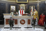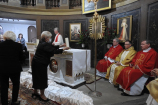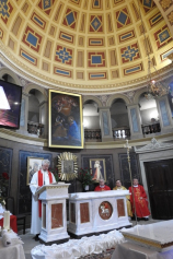 POWTARZAJĄC DUCHOWĄ WIZJĘ JANA APOSTOŁA W APOKALIPSIE: «UJRZAŁEM POD OŁTARZEM DUSZE ZABITYCH DLA SŁOWA BOŻEGO I DLA ŚWIADECTWA, JAKIE MIELI» UMIESZCZAMY W OŁTARZU RELIKWIE ŚWIĘTYCH MĘCZENNIKÓW MAKSYMIANA I WIKTORIANA KTÓRYCH AUTENTYCZNOŚĆ POTWIERDZIŁ SWYM PODPISEM BISKUP FRANCISZEK JEDWABSKI.