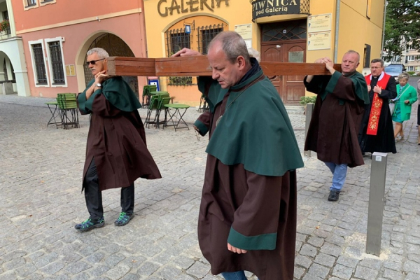 W różny sposób włączyli się w to modlitewne spotkanie wierni i duszpasterze z naszych parafii: bądź przez bezpośredni i osobisty w nim udział (NSPJ Szczecin), bądź zorganizowanie w parafii wspólnej modlitwy i adoracji krzyża (Chociwel, Dobrzany, Płoty, Stargard 1; 2). Dodajmy, że w Chociwlu ta ogólnopolska akcja wplotła się w przygotowania do odpustowych uroczystości ku czci Matki Bożej Bolesnej a same obchody pod przewodnictwem przełożonego generalnego Towarzystwa Chrystusowego, ks. Krzysztofa Olejnika SChr i okolicznościową homilią ks. Pawła Bortkiewicza SChr były przeżywane w związku z 80. rocznicą wybuchu II wojny światowej i przeróżnymi konsekwencjami z tym związanych, co przedstawia odsłonięty i poświęcony tego dnia pomnik, na którym umieszczono wymowny napis: