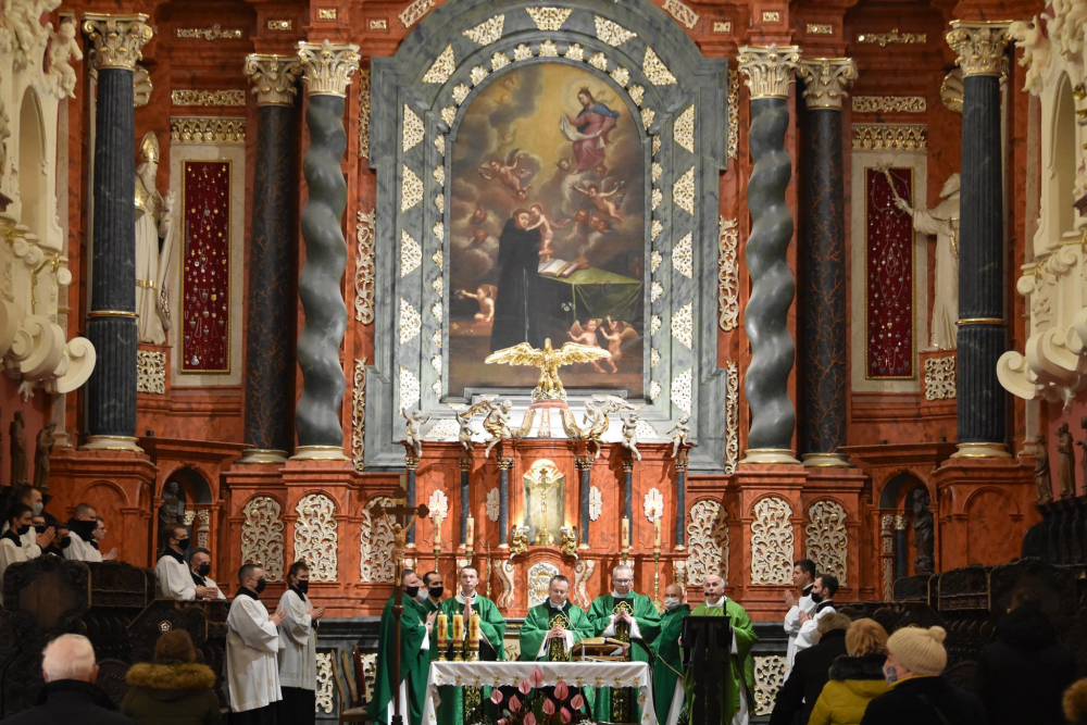 Od lat nasi klerycy wraz z moderatorami, a także inni Współbracia – mieszkańcy domu głównego aktywnie angażują się w tygodniową, nieustanną modlitwę u stóp Matki Bożej w Cudy Wielmożnej Pani Poznania w Sanktuarium Franciszkanów na Górze Przemysła. Ten szczególny modlitewny maraton odbywa się w początkach lutego: wierni trwają na siedmiodobowej (dzień i noc) modlitwie różańcowej przed Najświętszym Sakramentem w intencjach Rodzin, Kościoła i Ojczyzny. Środowy wieczór 3 lutego 2021 roku był czasem naszego wspólnego pielgrzymowania, czuwania i modlitwy. Przewodniczył jej rektor seminarium, ks. dr Jan Hadalski SChr a okolicznościową homilię wygłosił prefekt, ks. dr Paweł Jasina SChr.