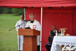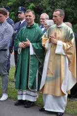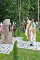 Niedzielna uroczystość rozpoczęła się Mszą Świętą polową o godz. 14.00 w asyście wojskowej, której przewodniczył ks. por. Marek Pruszkowski z bydgoskiej parafii wojskowej. Na jej początku ks. Maciej, miejscowy proboszcz powitał zaproszonych i przybyłych gości, a także nakreślił kontekst i cel tworzenia miejsc pamięci i upamiętniania chwalebnych momentów historii oraz uczczenia ofiar zbrodni totalitaryzmów XX wieku. Mówił m.in.: „Dzisiejsze uroczystości są odpowiedzią na słowa papieża św. Jana Pawła II: Naród, który nie zna swojej przeszłości umiera i nie buduje swojej przyszłości. W tym samym duchu zadanie przed nami postawił jakże doświadczony marszałek Józef Piłsudski, który konstatował: Naród, który nie szanuje swojej przeszłości, nie zasługuje na szacunek teraźniejszości i nie ma prawa do przyszłości. Dziś zamordowani tutaj są dla nas wzorem, głosem sumienia, są znakiem dla następujących pokoleń, aby pielęgnować wartości nieprzemijające. Dla nas zaszczytem jest dbałość o pamięć o Nich, ale także wyzwaniem, aby ta tragedia więcej się nie powtórzyła, aby nasze serca nigdy nie były jak ten kamień – twarde i niewzruszone. Dzisiejsze spotkanie, modlitwa, obecności szanownych gości dowodzi tego, że nasze życie poświęcone jest Bogu i Ojczyźnie. Ufamy, iż ten pomnik, który będziemy często mijać w naszym codziennym życiu będzie zachowaniem pamięci o wydarzeniach minionych, celebrowaniem zadanej nam wolności w teraźniejszości oraz modlitwą o wolną i niepodległą przyszłość Rzeczypospolitej”.