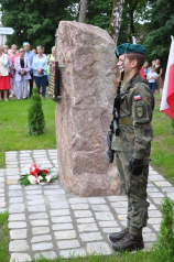 Po uroczystym śpiewie Boże coś Polskę, wszyscy zebrani udali się pod obelisk i tam nastąpiło jego odsłonięcie i poświęcenie. Jego odsłonięcia dokonała wnuczka jednego z zamordowanych, p. Maria Żyrek, a następnie zapadła chwila ciszy upamiętniająca wszystkich poległych w czasie II wojny światowej, po której wszyscy odśpiewali Rotę.