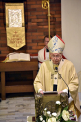Nawiązał w niej do odczytanej perykopy ewangelijnej wyjętej z ostatnich wersetów dziewiątego rozdziału Ewangelii św. Mateusza, gdzie ewangelista dokonuje swoistej syntezy, małego résumé działalności Chrystusa i wprowadza w drugą Jego mowę – mowę misyjną: Chrystus dokonywał wielu dzieł, przede wszystkim zatroszczył się o swój lud: nauczał go, karmił, uzdrawiał i w końcu poświęcił w ofierze swoje życie. Jednocześnie przypomniał, że nieustannie potrzeba współpracowników tego dzieła i modlitwy w tej intencji – „Żniwo wprawdzie wielkie, ale robotników mało. Proście Pana żniwa, żeby wyprawił robotników na swoje żniwo” (Mt 9,37-38) i że każdy jest wezwany do podjęcia tego zadania. Dalej przypomniał sylwetkę Prymasa Polski kard. Augusta Hlonda: to, jak układały się koleje jego życia, kogo spotykał na życiowych drogach i kto wywierał wpływ na jego działalność, zwłaszcza na stworzenie nowej rodzinny zakonnej Towarzystwa Chrystusowego dla Wychodźców. Nie zabrakło odwołań do jego pism, listów i przemówień. W końcu przedstawiając niektóre fakty z historii naszego zgromadzenia, przywołał modlitwę, którą każdy chrystusowiec zanosi w intencji Polonii i tych, którzy dla niej podejmują różnorodne działania duszpasterskie.