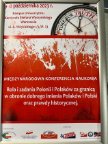 Dwaj chrystusowcy zaangażowani w prace Światowej Rady Badań nad Polonią, ks. prof. UAM dr hab. Bernard Kołodziej SChr i ks. dr Zdzisław Malczewski SChr, uczestniczyli w dniach 9-10 października 2023 r. w Międzynarodowej Konferencji Naukowej pt. „Rola i zadania Polonii i Polaków za granicą w obronie dobrego imienia Polaków i Polski oraz prawdy historycznej”  zorganizowaną przez tę Radę oraz Instytut Nauk Historycznych i Katedrę Nauk Pomocniczych Historii Uniwersytetu Kardynała Stefana Wyszyńskiego w Warszawie. Uczestniczyło w niej wielu zaproszonych gości, a wśród nich: przedstawiciele rządu, parlamentarzyści, naukowcy zajmujący się problemami polonijnymi oraz studenci UKSW.