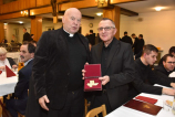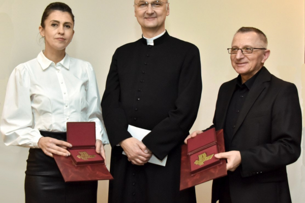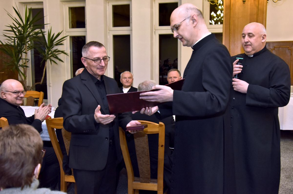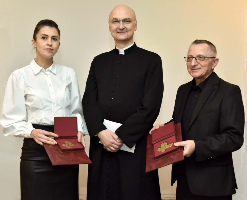 Od ponad 10 lat tę naszą wdzięczność wyrażamy przez wręczenie Statuetki, Medalu bądź Dyplomu Przełożonego Generalnego Towarzystwa Chrystusowego. W 2022 r., w roku naszego dziewięćdziesięciolecia tymi Medalami wyróżniliśmy dwie osoby, p. Liudmilę Matveyevą szczególnie za okazaną różnorodną pomoc w czasie pobytu wojennych uchodźców z Ukrainy oraz p. Grzegorza Duszyńskiego, za ponad 25-letnią pełną zaangażowania pracę w zakonnym wydawnictwie „Hlondianum” i w redakcji „Mszy Świętej”. Ks. Krzysztof Olejnik SChr, nasz przełożony generalny wręczył Medale podczas agapy w zakonnym refektarzu w Poznaniu po zakończeniu celebracji eucharystycznej właśnie w uroczystość Jezusa Króla Wszechświata. Towarzyszył mu ks. Ryszard Szymanik SChr, przełożony domu, który odczytał okolicznościowe słowo dołączone do wyróżnienia, że Uhoronowani otrzymują Medale Przełożonego Generalnego na wieczną rzeczy pamiątkę jako wyraz szacunku i wdzięczności za działalność na rzecz charyzmatu Towarzystwa Chrystusowego dla Polonii Zagranicznej i ku pożytkowi tejże Polonii oraz, że zostają wpisani do Wieczystej Księgi Dobrodziejów i uczestniczą we wszystkich dobrach duchowych Towarzystwa Chrystusowego.