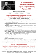 22 października br. przypada 70. rocznica śmierci Czcigodnego Sługi Bożego kard. Augusta Hlonda. Na ten dzień zostały zaplanowane w Warszawie obchody, składające się z dwóch części - z konferencji naukowej pt. "W służbie Bogu i Ojczyźnie" i Eucharystii o beatyfikację kard. A. Hlonda.