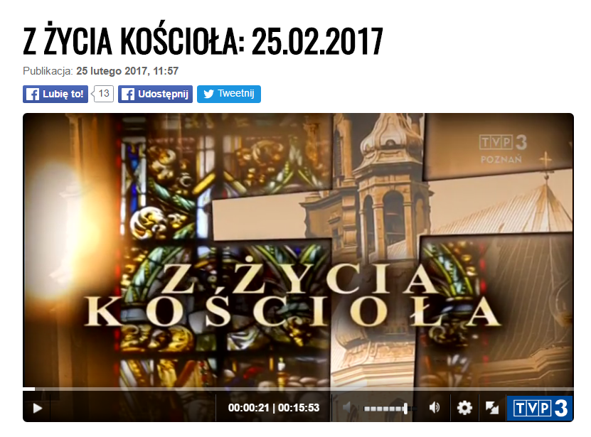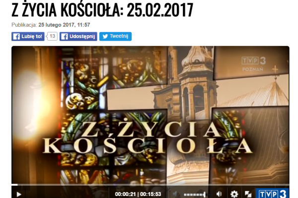TVP3 Poznań w programie "Z życia Kościoła" (każda sobota godz. 10.30) wyemitowała informację na temat Sług Bożych - kard. Augusta Hlonda i o. Ignacego Posadzego. Materiał o Ojcu Ignacym ukazał się 4 lutego br., a o Prymasie Hlondzie 25 lutego br.