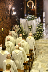 Po zakończonej liturgii z zaangażowaniem podjęliśmy wspólnotową i indywidualną modlitwę w intencjach osobistych, w intencjach Polonii i w intencjach zgromadzenia, uczestnicząc w przygotowanych przez pracowników agend, domowników i seminarzystów nabożeństwach. Muzyczny i śpiewaczy akompaniament nie tylko organów, lecz także fletu poprzecznego oraz wykonany Akatyst ku czci Bogurodzicy Maryi dopełnił uroczystej, pełnej rozmodlenia atmosfery podczas Nawiedzenia.