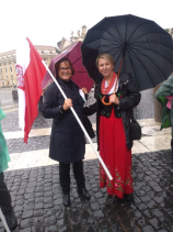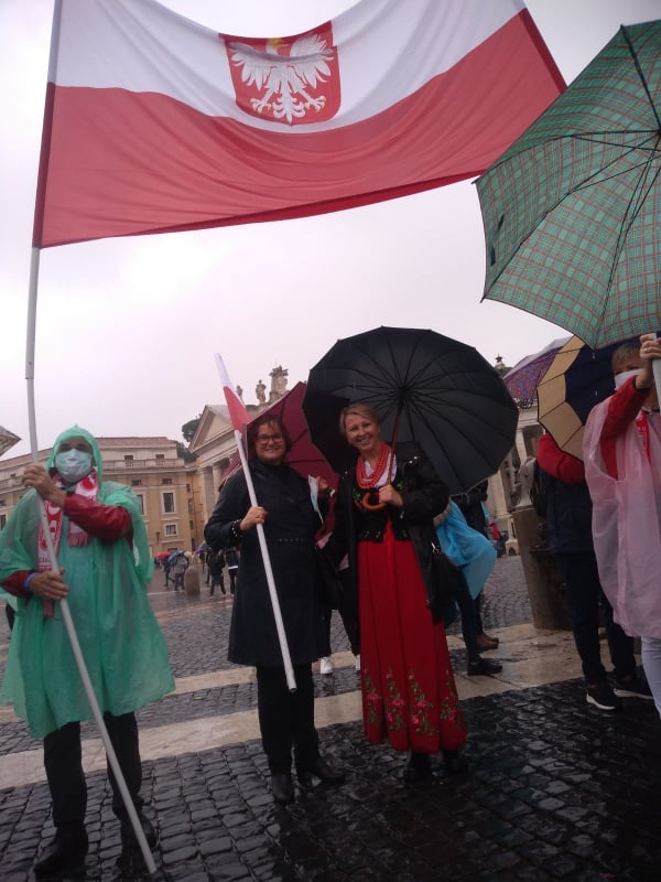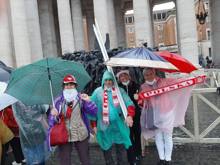 Na placu św. Piotra zgromadziło się – pomimo mocnego i zacinającego deszczu – niemała grupa pielgrzymów, w tym i ci pochodzący z różnych wspólnot etnicznych z Diecezji Rzymskiej. Nie zabrakło też wiernych z misji polskiej cum cura animarum przy kościele świętego Stanisława Biskupa i Męczennika ogarniającej nie tylko Wieczne Miasto, ale również duszpasterstwo polskie w niedalekiej Ostii, którzy przybyli z ks. Mateuszem Gardzinskim SChr, prokuratorem generalnym i zarazem wicekapelanem dla Polaków w Diecezji Rzymskiej. Ze względu na trwającą epidemię owo pielgrzymowanie nie mogło niestety mieć uroczystego charakteru, ale mimo to nie powstrzymało naszych rodaków – zachowujących zasady bezpieczeństwa ze względu na epidemię – od ‘wyraźnego’ uczestnictwa w czasie modlitwy z Papieżem.
