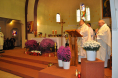 Msza Święta była celebrowana przez trzech kapłanów: prowincjała chrystusowców z Francji i Hiszpanii, ks. Jana Ciągło SChr, proboszcza ks. Jarosława Kocha SChr i gościa przybyłego z Poznania, ks. Marcina Stefanika SChr. W wygłoszonej homilii ks. Marcin zwrócił szczególną uwagę na rolę i miejsce, jaką w polskich rodzinach zawsze odgrywał i nadal odgrywa Pan Bóg. Podkreślał jak w latach trzydziestych kardynał Hlond, założyciel ich wspólnoty zakonnej i Prymas Polski, wzywał do tego, iż wolna Polska nie będzie już toczyć walkę o ziemię, ale o ducha Chrystusowego. A w późniejszym czasie, w latach osiemdziesiątych, gdy na nowo Polska znalazła się w bardzo trudnej sytuacji politycznej, ksiądz Jerzy Popiełuszko upominał naród polski, że w tej sytuacji nie chodzi już o wolność zewnętrzną, ale wewnętrzną, której nie da się kształtować bez Boga. A dziś, gdy rodzina jest tak bardzo wystawiona na różnego rodzaju próby i narażona na wiele przeciwności, najważniejsza jest odbudowa pozycji Boga w rodzinach, gdzie kształtują się fundamentalne postawy młodego pokolenia. Na zakończenie homilii, wszyscy wierni pomodlili się modlitwą księdza Piotra Skargi w intencji Ojczyzny, którą wraz z kotylionami w ojczystych barwach każdy z nas otrzymał przed rozpoczęciem liturgii.
