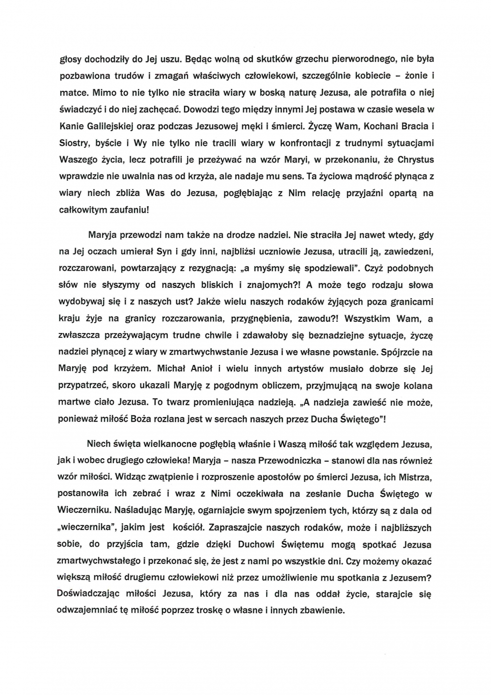 Życzenia wielkanocne ks. bp Wiesława Lechowicza
