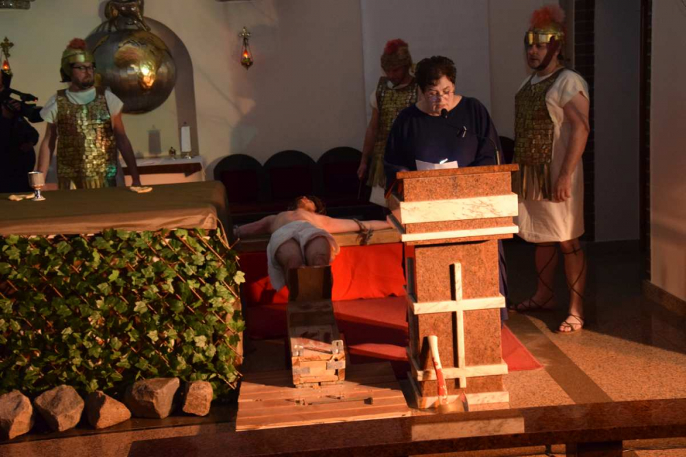 Dziękujemy Panu Bogu oraz wszystkim zaangażowanym w przygotowanie i wystawienie tej inscenizacji, bo to dzięki Im udało nam się zrealizować to przedsięwzięcie. Dziękujemy również wszystkim, którzy zechcieli przybyć w ten piątkowy wieczór do kościoła, bowiem każdy stał się tym aktorem, którego brakowało na każdej z prób.