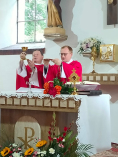 W kolejną sobotę 6 września przeżywaliśmy w Kozielicach Dożynki Sołeckie. Uroczystej Eucharystii, podczas której rolnicy i mieszkańcy Kozielic dziękowali Panu Bogu za tegoroczne zbiory. Przewodniczył jej ks. proboszcz Jarosław Bilicki SChr, a o oprawę muzyczną zadbał zespół śpiewaczy Jarzębina z Kozielic. Ten dzień był również pierwszym dniem modlitwy przed nowym obrazem Pana Jezusa Miłosiernego Jezu ufam Tobie ofiarowanym i namalowanym przez kozielickich parafian.