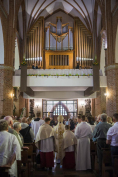 Ta podniosła uroczystość zgromadziła licznie parafian, których wysiłek w sprowadzenie i zainstalowanie instrumentu wielokrotnie podkreślano, zarówno w słowie wprowadzenia i powitania wypowiedzianym przez ks. proboszcza Piotra Kurzaja SChr, jak i słowie kazania Księdza Arcybiskupa. Przybyło też wielu gości – przedstawiciele władz miasta i powiatu, służby mundurowe, duchowieństwo diecezjalne i zakonne, w tym chrystusowcy – dawni duszpasterze pyrzyckiej parafii i ci, którzy w tej parafii wzrastali i odkrywali powołanie do wyłącznej służby Bogu w Jego Kościele. Splendoru dodała oprawa muzyczna w wykonaniu zespołu „Cantus Delicium” pod dyrekcją parafialnego organisty prof. US Tomasza Szutkowskiego, a także koncert organowy, który odbył się po zakończeniu liturgii w wykonaniu prof. Bogdana Narlocha i mgra Jakuba Lebiody, absolwenta Akademii Sztuki w Szczecinie.
