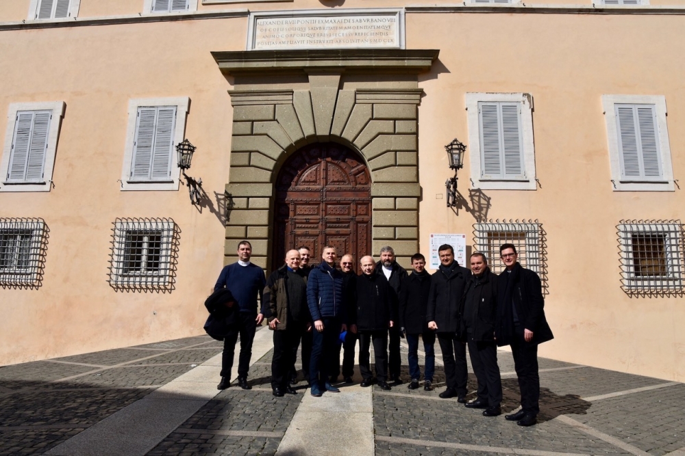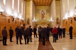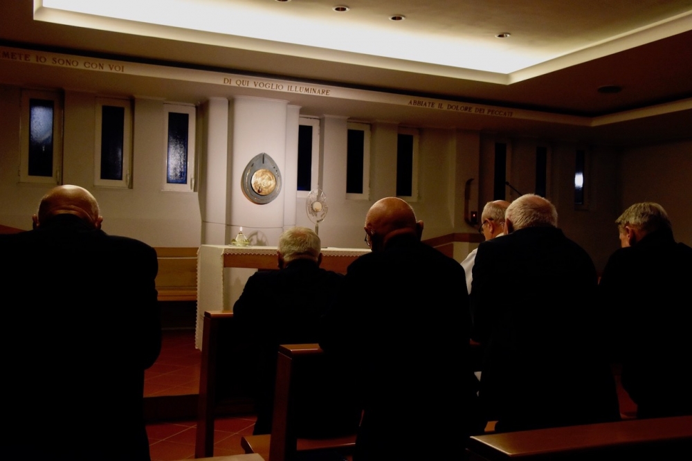 Współbracia z prowincji niemiecko-holendersko-włosko-węgierskiej natomiast rekolekcje odprawiają w drugim tygodniu Wielkiego Postu w Ariccia k/Rzymu (w tym sam ośrodku rekolekcyjnym, w którym tydzień wcześniej duchowe ćwiczenia odbywał papież Franciszek ze swoimi współpracownikami) a nauki głosi o. Ryszard Wróbel OFMConv. Ten tydzień zapisał się arktycznymi mrozami w wielu krajach Europy: śnieg i mróz nie ominęły nawet mieszkańców słonecznej Italii. I rekolekcje były przeżywane w takiej zimowej aurze… A jednocześnie był to czas szczególnie intensywnego i głębokiego duchowego zamyślenia i skupienia oraz wielkie braterskie spotkanie wszystkich kapłanów posługujących w różnych placówkach duszpasterskich w prowincji. Plan rekolekcyjnych zajęć umożliwił zwiedzenie Pałacu Papieskiego w Castel Gandolfo. Szczególnym wydarzeniem była koncelebrowana w czwartkowy poranek przy grobie Św. Jana Pawła II Eucharystia, którą wraz z księżmi rekolektantami koncelebrowało ponad 90 kapłanów.