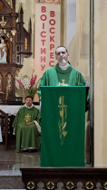 Obchody tego dnia, przeżywane w realiach trwającej wojny w obronie niepodległości, nabierają szczególnego znaczenia. To już nie tylko święto państwowe, ale także głębokie świadectwo istnienia i niezłomności narodu ukraińskiego. W czasie, gdy niemal codziennie na Ukrainę spadają bomby, a w świątyniach żegna się bohaterów poległych na froncie, modlitwa Kościoła staje się jeszcze mocniejszym wołaniem o wolność i pokój. W homilii ks. Paweł Jasina SChr odwołał się do Ewangelii, wskazując, że dramatyczne doświadczenia Ukrainy można porównać do ewangelicznej próby wytrwania przy Chrystusie – do odważnego stąpania po Jego śladach i przechodzenia przez „ciasne drzwi” ku królestwu Bożemu. – To droga wymagająca, naznaczona cierpieniem, ale prowadząca do prawdziwego życia i zwycięstwa – podkreślił Wikariusz Generalny.