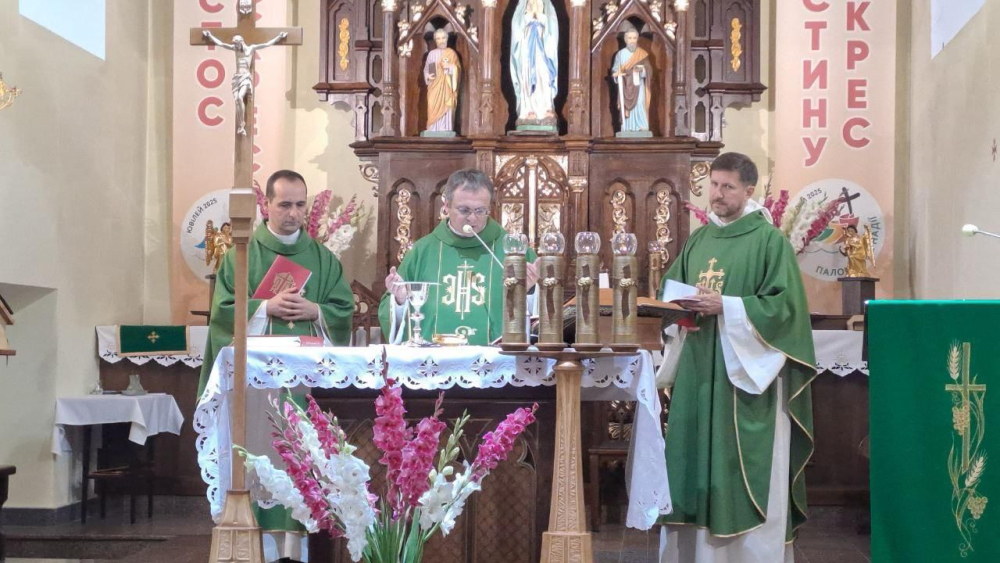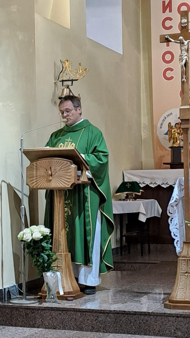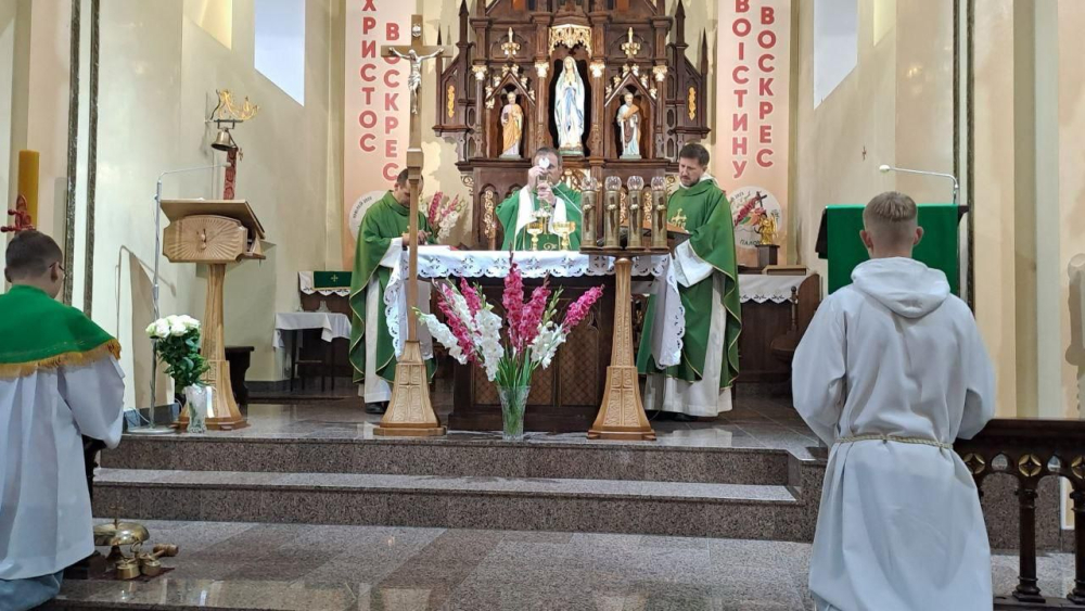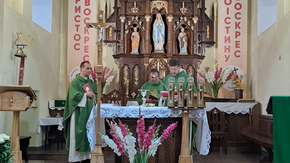 W parafii Najświętszego Serca Pana Jezusa w Kamieńcu Podolskim w niedzielę 24 sierpnia 2025 r. odbyła się uroczysta Eucharystia z okazji kolejnej rocznicy odzyskania przez Ukrainę niepodległości. Liturgii przewodniczył przełożony miejscowej wspólnoty chrystusowców i proboszcz parafii ks. Marcin Sęk SChr. W uroczystości uczestniczyli przedstawiciele Zarządu Generalnego Towarzystwa Chrystusowego – ks. Paweł Jasina SChr wikariusz generalny zgromadzenia oraz ks. Marek Grygiel SChr ekonom generalny.