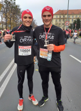 Na mecie, na zwycięzców, czekały nie tylko medale (statuetka husarza) ale również tradycyjne w tym dniu rogale świętomarcińskie.