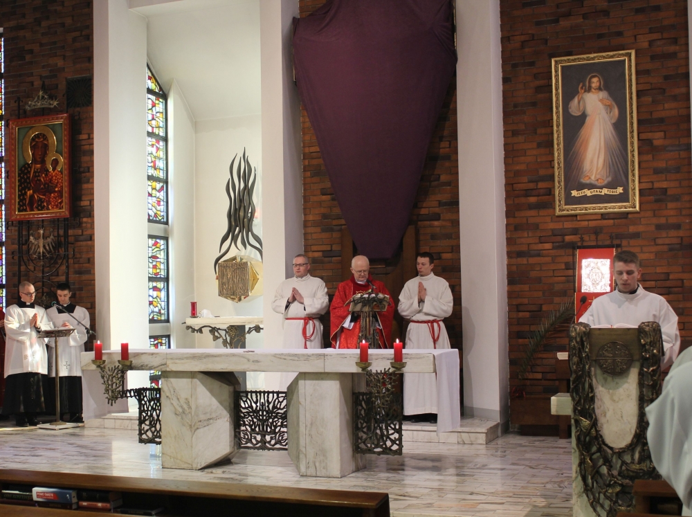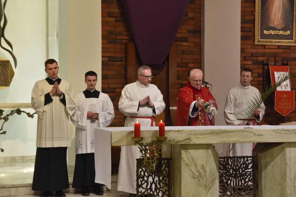 Obchodom Niedzieli Palmowej przewodniczył ks. dr Paweł Melczewski SChr, dyrektor zakonnej biblioteki i odpowiedzialny za Wieczystą Księgę Fundatorów i Darczyńców Zgromadzenia. W wygłoszonym po odczytaniu Męki Pańskiej słowie wyjaśniał znaczenie okrzyków, które tłumy wznosiły na cześć Chrystusa wjeżdżającego na osiołku do Jerozolimy. „Hosanna na wysokości” to okrzyk uwielbienia, podziwu wobec wspaniałości i wielkości cudów Jezusa a jednocześnie to wołanie o pomoc i ratunek…; to wyznanie zdumienia i zaufania, że człowiek został przyjęty przez Boga… Przybliżając owe znaczenie ks. Paweł pytał zgromadzonych: czy od uwielbienia Tego, który stał się naszym bratem i podjął mękę, śmierć i zmartwychwstanie dla naszego odkupienia należy się powstrzymać? Czy powstrzymywać można odruch wdzięczności za powołanie, za udział w dziełach poczętych przez zbawcze dzieło Boga? A swoje rozważanie zakończył modlitwą: „Boże, naucz wielbić i wysławiać Ciebie tak, jak czynią to aniołowie i święci w niebie…”