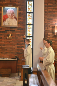 Zarówno ostatnia sobota i niedziela tegorocznego października rzeczywiście ‘urosły’ do rangi zakonnego święta. W sobotę bowiem nasz Współbrat przez wieczyste ślubowanie rad ewangelicznych czystości, ubóstwa i posłuszeństwa potwierdził swoje TAK na Boże wezwanie i powołanie. W homilii przełożony generalny, nawiązując do czytania z listu św. Pawła do Rzymian, podkreslił, jak ważna jest szczególna i ciągle podtrzymywana relacja z Jezusem. To z niej rodzi się dopiero pragnienie podążania za Chrystusem czystym, ubogim i posłusznym. Poprzez to, przywołując samego ks. Posadzego, przypomniał, że sam akt profesji zakonnej jest najgłębszym aktem czci i hołdu dla Majestatu Bożego.