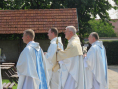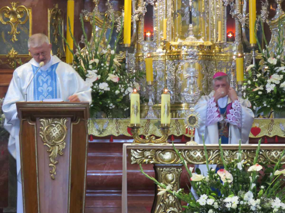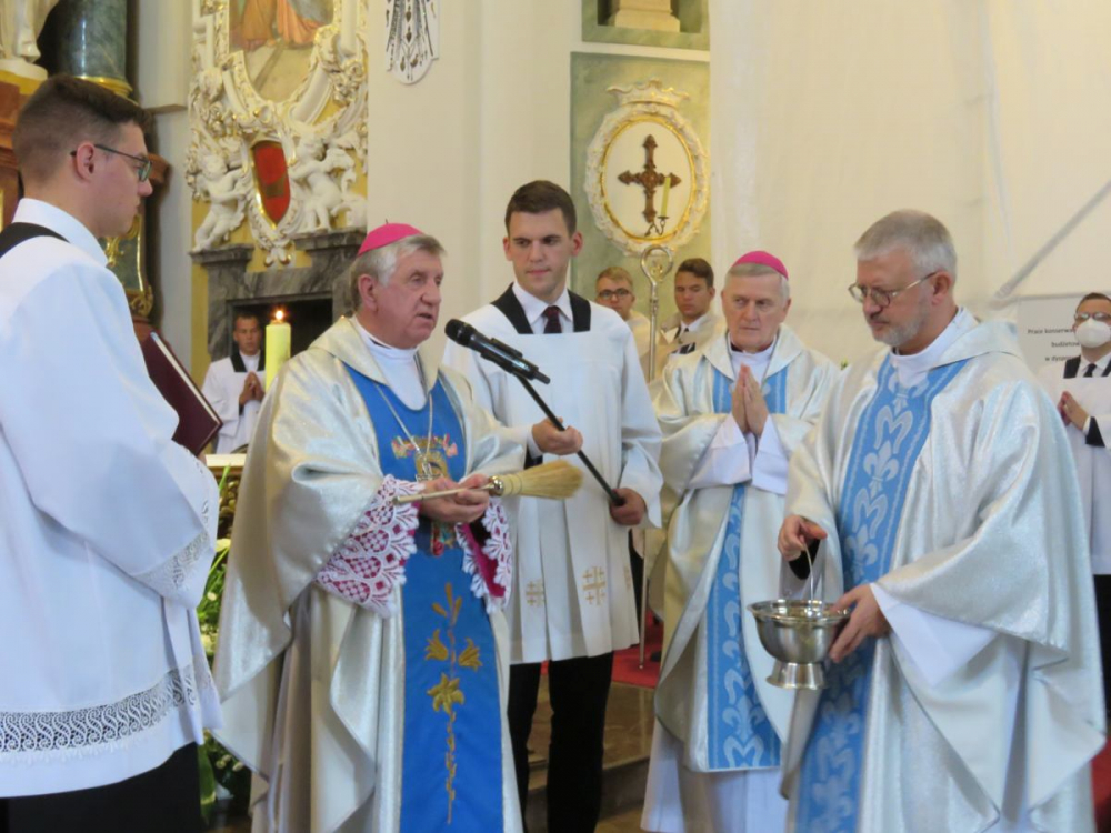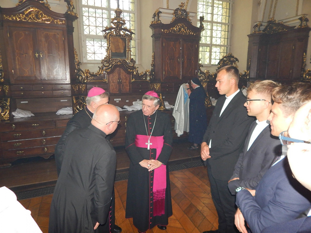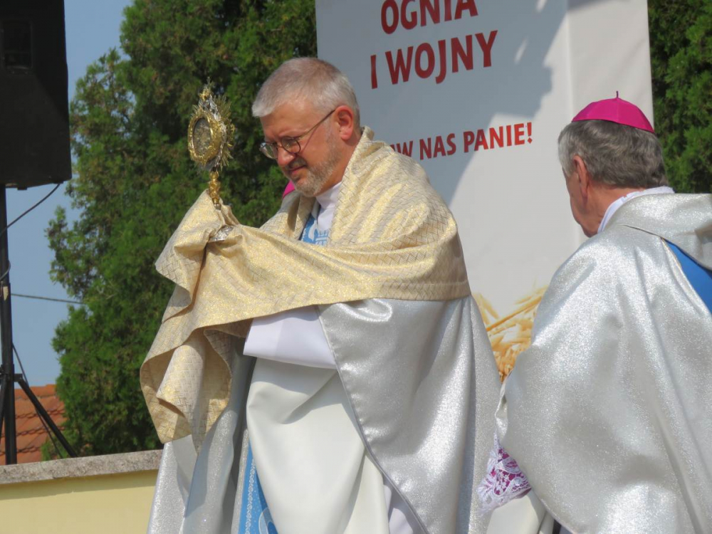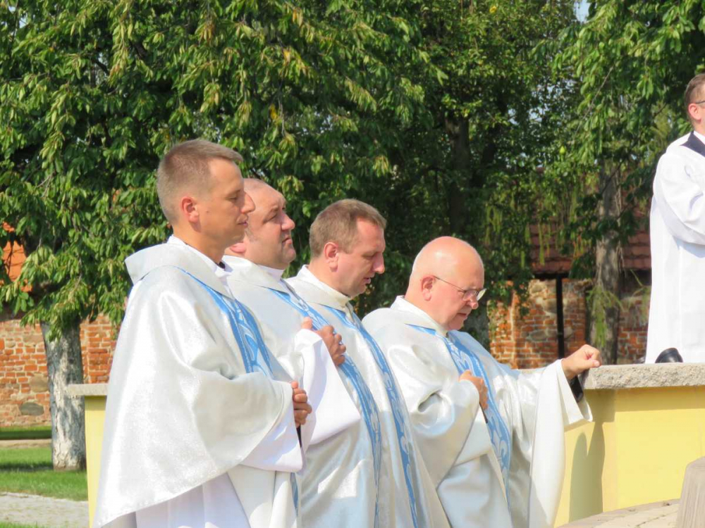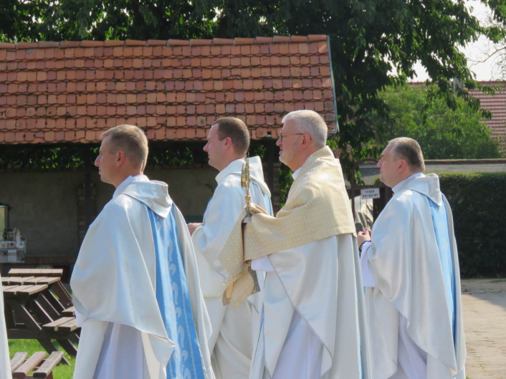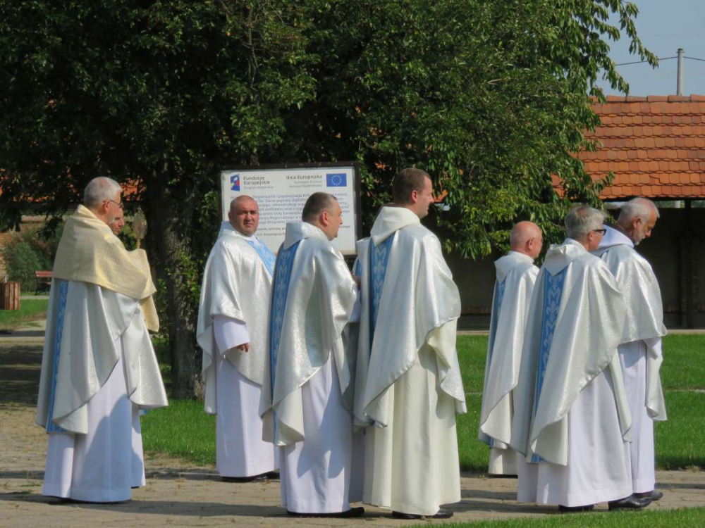 Uroczystej Eucharystii przewodniczył i homilię wygłosił abp Andrzej Dzięga, metropolita szczecińsko-kamieński. Wśród koncelebrujących obecny był bp Grzegorz Balcerek, biskup pomocniczy archidiecezji poznańskiej i jednocześnie referent osób życia konsekrowanego w archidiecezji (tyt. Selendety). Nasi nowicjusze zaangażowali się w oprawę liturgii Mszy. Po Mszy Świętej procesyjnie udaliśmy się do ołtarza polowego z relikwiami Krzyża Świętego. Tam odmówiliśmy Koronkę do Miłosierdzia Bożego, odśpiewaliśmy Suplikacje oraz oddaliśmy cześć tym relikwiom. Dodajmy, że do Gostynia poza nowicjuszami i ich wychowawcami pielgrzymowali również chrystusowcy z duszpasterskich placówek na Pomorzu Zachodnim, mieszkańcy domu głównego wraz z przebywającymi tam w tym czasie seminarzystami. Wspólnotowa agapa na ‘świętogórskich błoniach’ była okazją do spotkania się i wzajemnego dzielenia się w różnorodności zakonnych charyzmatów.