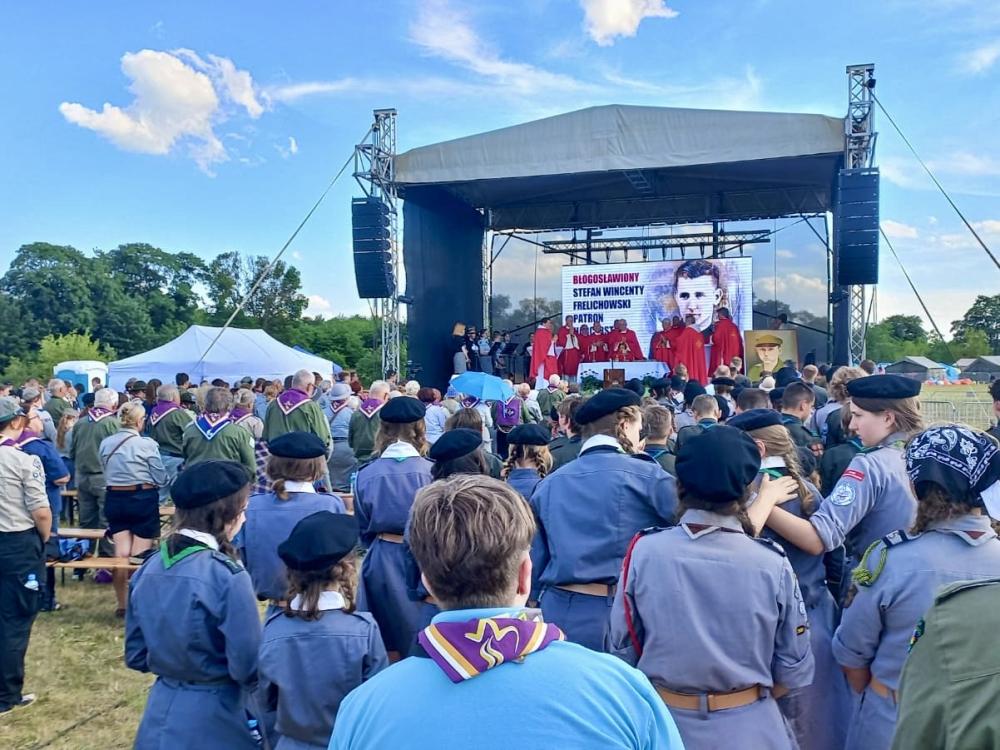Uroczystości 25. rocznicy beatyfikacji Patrona wszystkich harcerzy bł. Stefana Wincentego Frelichowskiego zgromadziły na terenie toruńskiego aeroklubu uczestników Międzynarodowego Zlot Harcerzy i Skautów WICEK 2024.