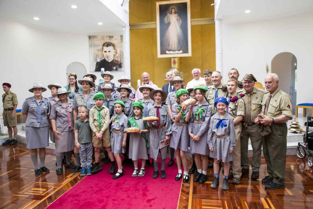W uroczystości uczestniczyli licznie zgromadzeni harcerze z Brisbane, Sydney i Melbourne wraz z ks. Krzysztofem Tyliszczakiem, Naczelnym Kaplanem ZHP oraz ks. Kamilem Żyłczyńskim SChr, kapelanem ZHP w Australii i rektorem Sanktuarium. Liturgię, jak również spotkanie w harcerskim kręgu ubogacili muzycy z Polski m.in. Darek Malejonek z Arki Noego i 2Tm2,3.
