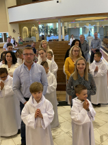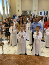 Po homilii ks. Krzysztof przedstawił wspólnocie parafialnej chłopców, którzy w tym roku duszpasterskim przeszli formację kandydata na ministranta. Po prezentacji kandydatów, rodzice nałożyli im po raz pierwszy strój przypisany pełniącym posługę przy ołtarzu. Uroczyście ubrani, chłopcy złożyli ministranckie ślubowanie. Dla wspólnoty parafialnej w Lombard było to wielkie wydarzenie, nie tylko z powodu tak licznej grupy. Przede wszystkim jest to okazja, by ci najmłodsi parafianie mogli w ramach swojej grupy duszpasterskiej przejść formację ludzką i duchową u boku samego Jezusa, służąc na co dzień przy ołtarzu.