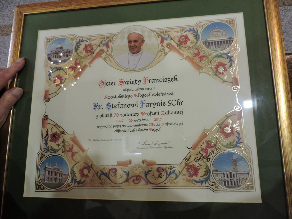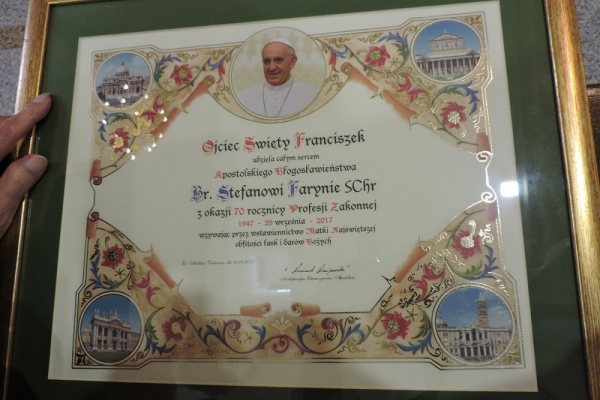 29 września 1947 roku swoją pierwszą zakonną profesję złożył br. Stefan Faryna SChr. Po 70 latach Współbracia z Puszczykowa i Poznania zgromadzili się wokół Dostojnego Jubilata 24 września br., w niedzielę poprzedzającą ipsa dies jubileuszowej rocznicy, aby razem z nim podziękować Dobremu Bogu za wszystkie otrzymane łaski i dobrodziejstwa i wspólnie odśpiewać uroczyste Te Deum laudamus…